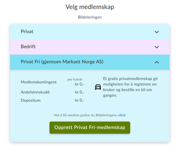 Velg Privat Fri, og Opprett Privat Fri-medlemskap.